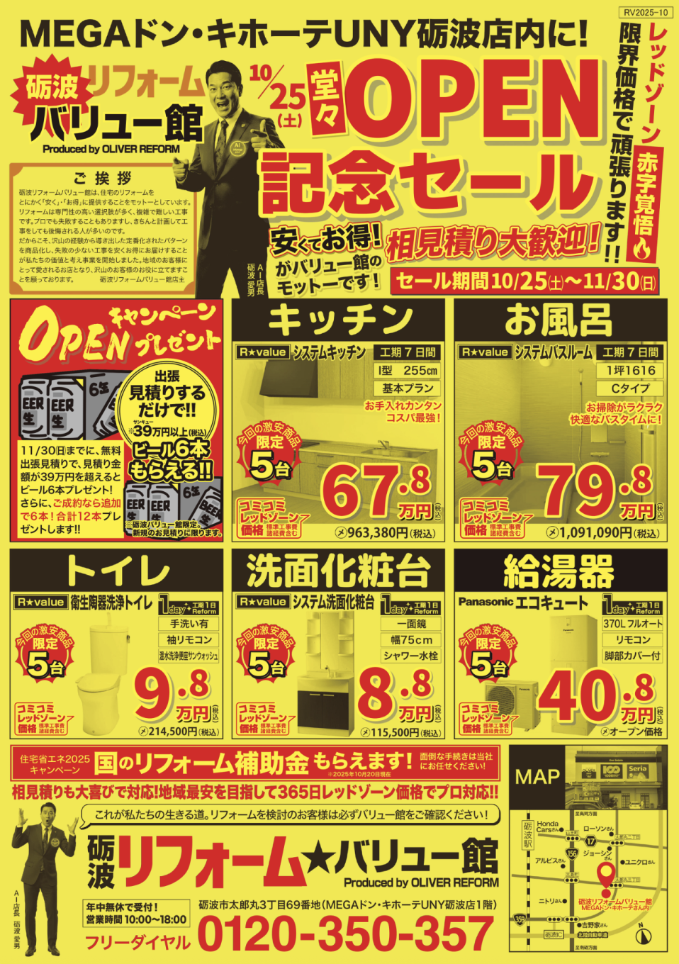 尚、オリバーリフォーム砺波のオープンを記念しまして・・・