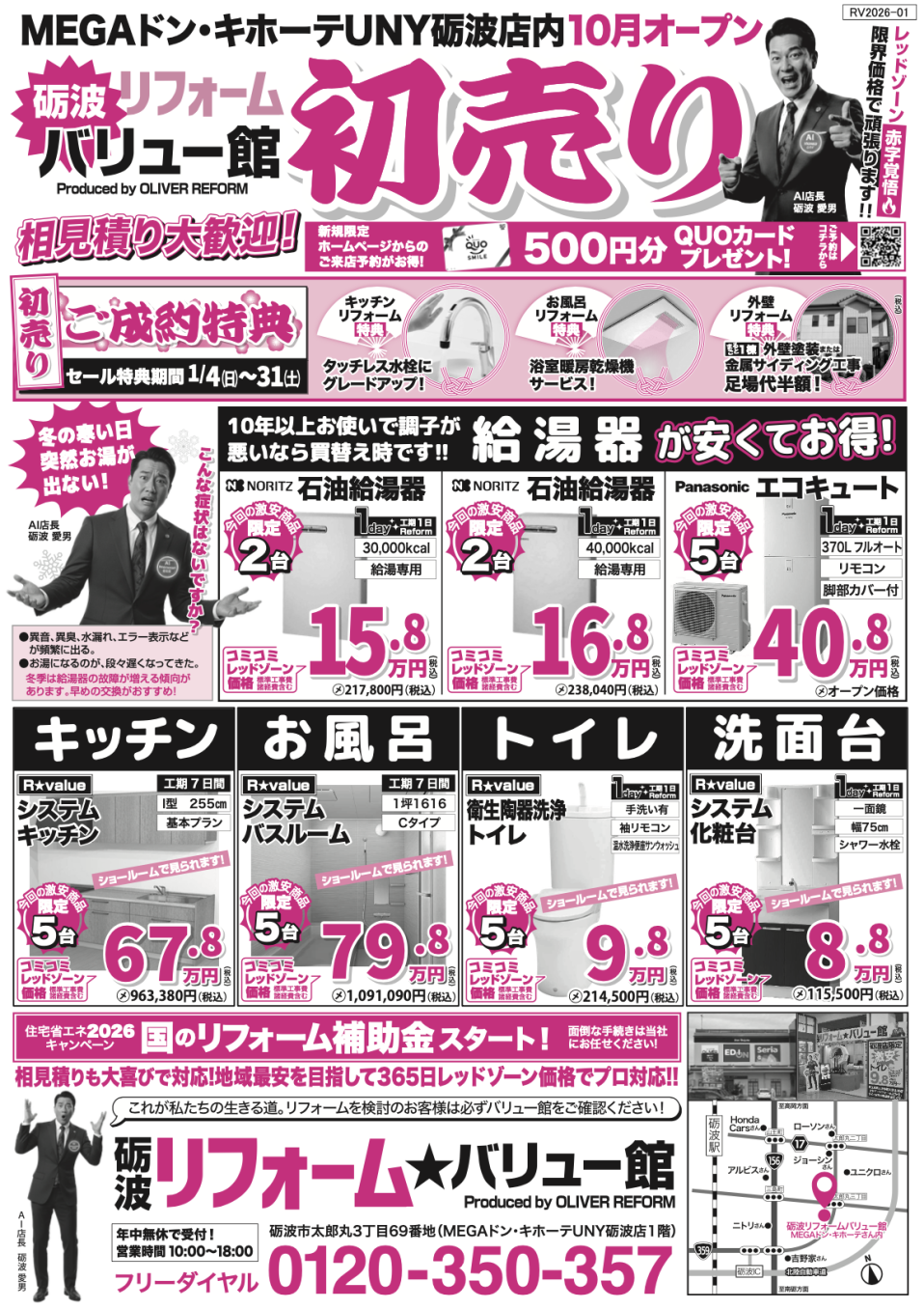 住所:砺波市太郎丸3丁目69 MEGAドン・キホーテUNY 砺波店1階(リフォームバリュー館)