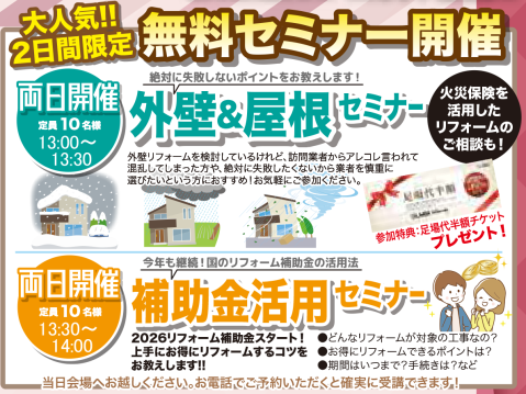 セミナーはお電話やホームページにてご予約をいただきますと確実に受講できますので、事前予約がオススメです!