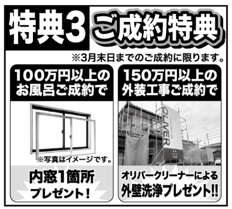 イベントにご来場いただき、3月末日までにご成約いただいたお客様だけへのキャンペーン!