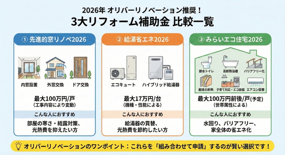 オリバーリノベーションでは、お住まいの状況やご希望を伺いながら、補助金が使えるかどうか、工事のタイミングも含めて丁寧に確認しています。