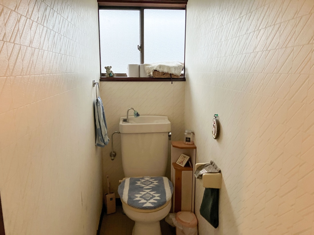キャビネット一体型ですっきりとした上品な印象のトイレ。ちょっとした収納があるのも便利です。