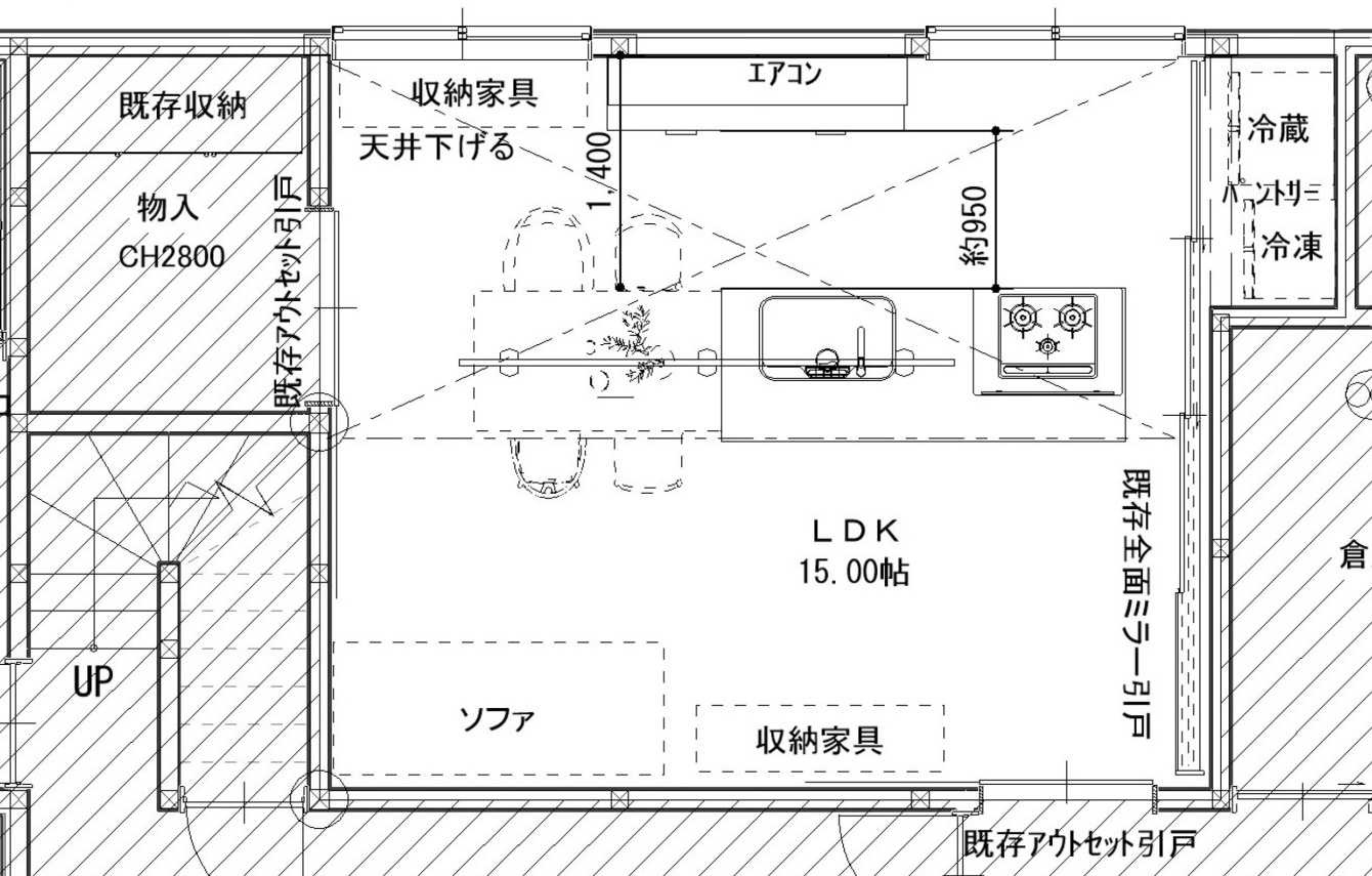 リフォームの動機は、2階にあったキッチンの使い勝手。「2階のキッチンが狭くて使いにくかったので、1階に広いキッチンを作ろうと考えたのが始まりでした」とN様。当初は、1階の部屋に元々あったミニキッチンを一般的なものに入れ替えるだけの予定でしたが、以前から住宅展示場やショールーム、雑貨屋を巡るのが趣味だったN様には、「カフェのような空間に住みたい」という気持ちもありました。