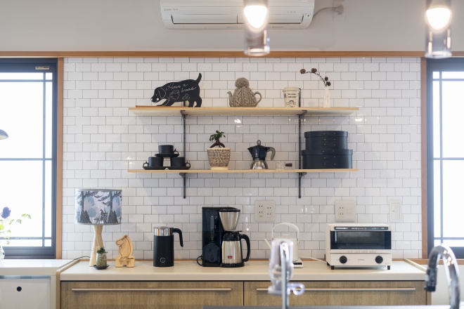 お気に入りのキッチンに立ち、センス良く並べられた小物や食器を眺める時間は、日常を特別なものに変えてくれます。「大好きなカフェ風の空間になって、友人を招いてお茶をすることが増えました」と笑顔で語るN様。長年温めてきた「好き」を妥協せずに形にしたことで、毎日がわくわくするような、心地よい住まいが完成しました。