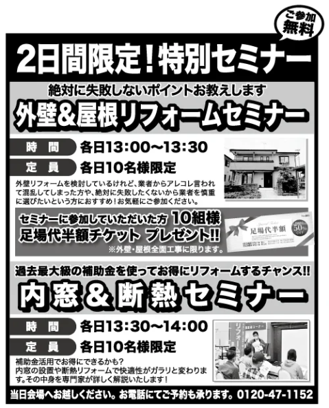 富山市近辺にお住いのみなさま!お得なリフォームイベントのお知らせです!!