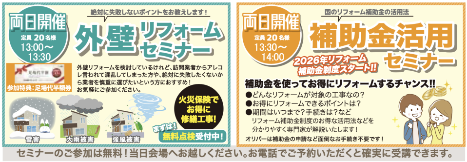 ▼大好評!外壁リフォーム・補助金活用セミナー開催‼️▼