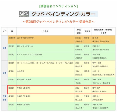 第28回グッド・ペインティング・カラー 戸建改修部門 優秀賞を受賞しました!
