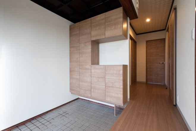玄関まわりをいつも素敵に飾られるお客様にとって、装飾品をすぐ近くにしまえる便利さが大変喜ばれています。 -